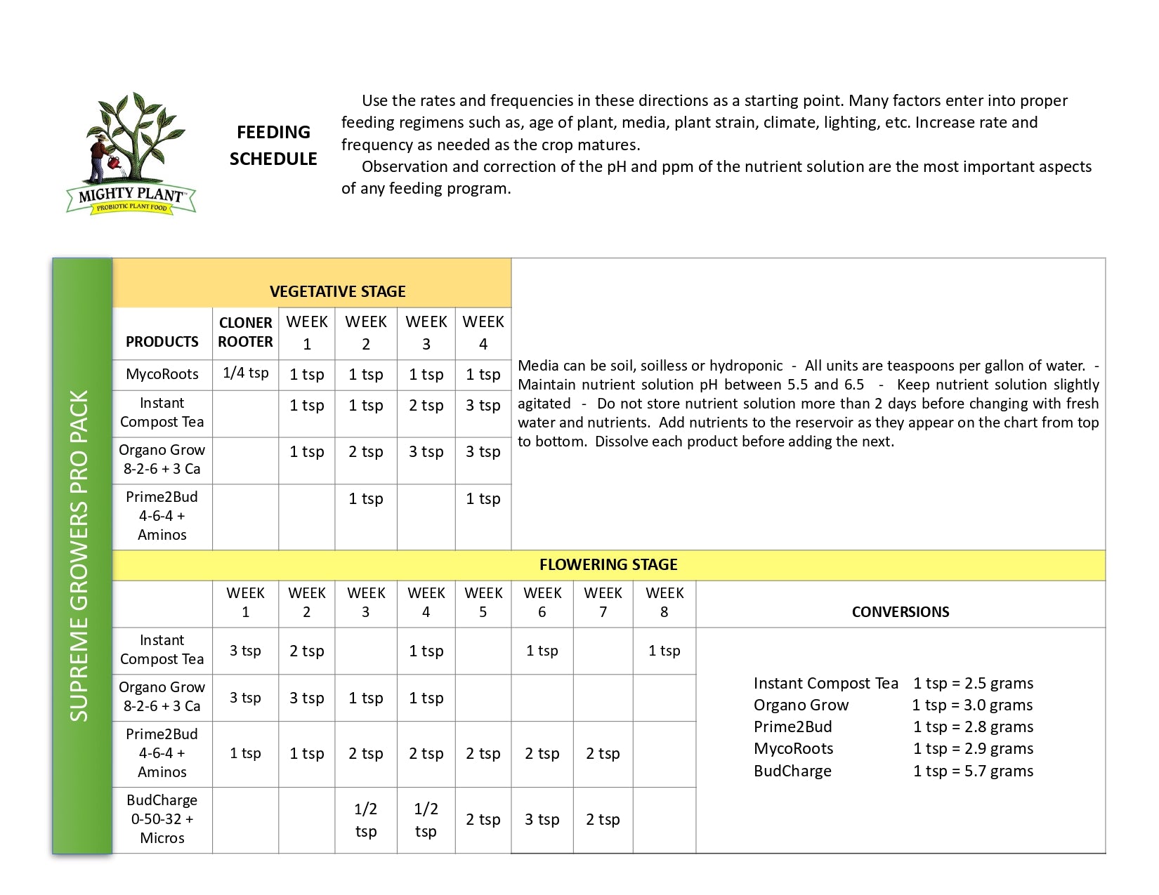 Use the recommended rates as a starting point and adjust as needed based on plant age, strain, medium, climate, and lighting.